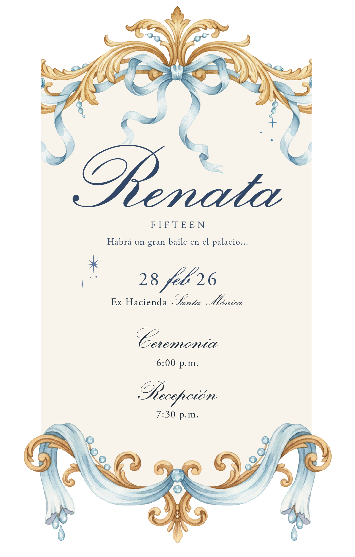 Para su comodidad, tanto la Ceremonia Religiosa como la Recepción se llevarán a cabo en la Ex-Hacienda Santa Mónica, que cuenta con servicio de Valet Parking.